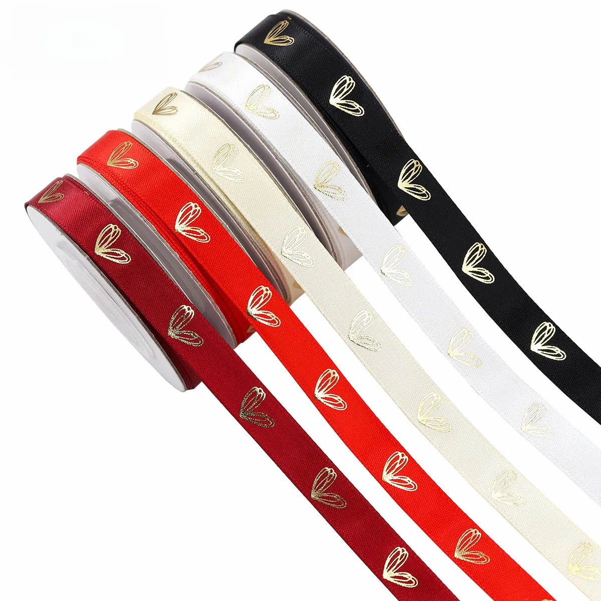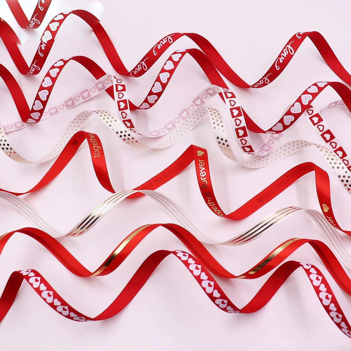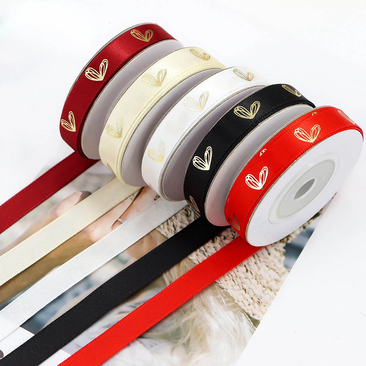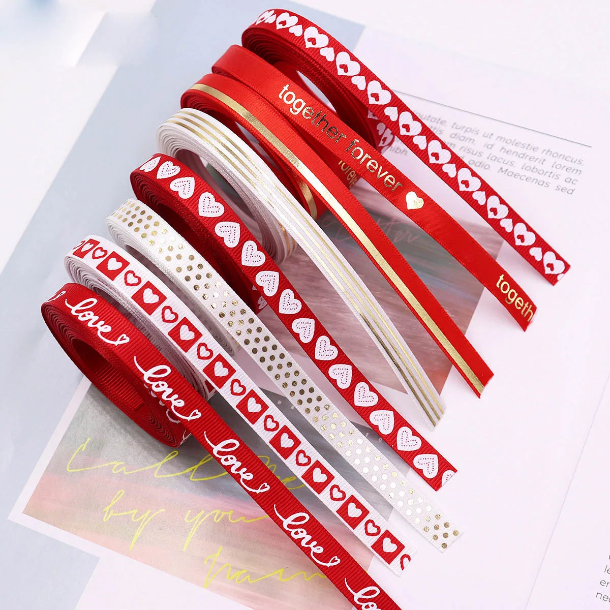 1cm Width Hot Stamping Love Ribbon Holiday Packaging Making Valentine’s Day Handmade DIY Crafts Home Decoration
