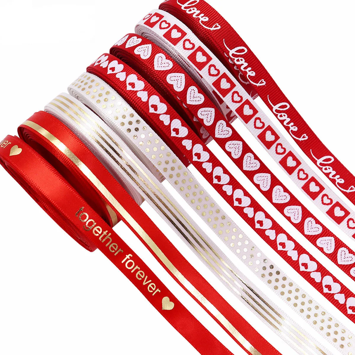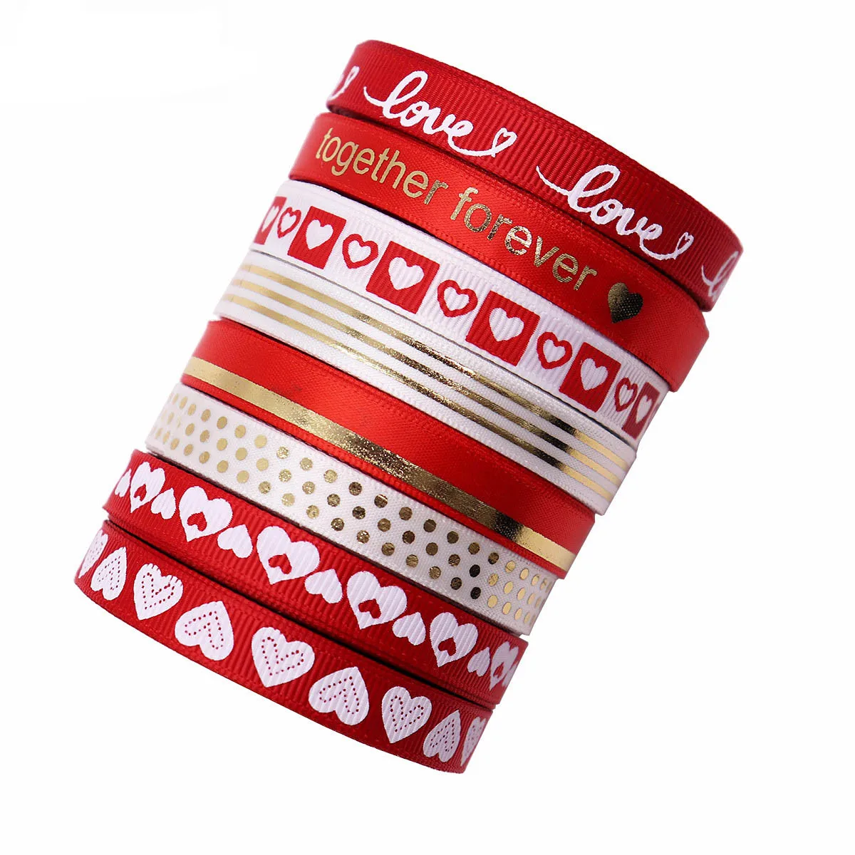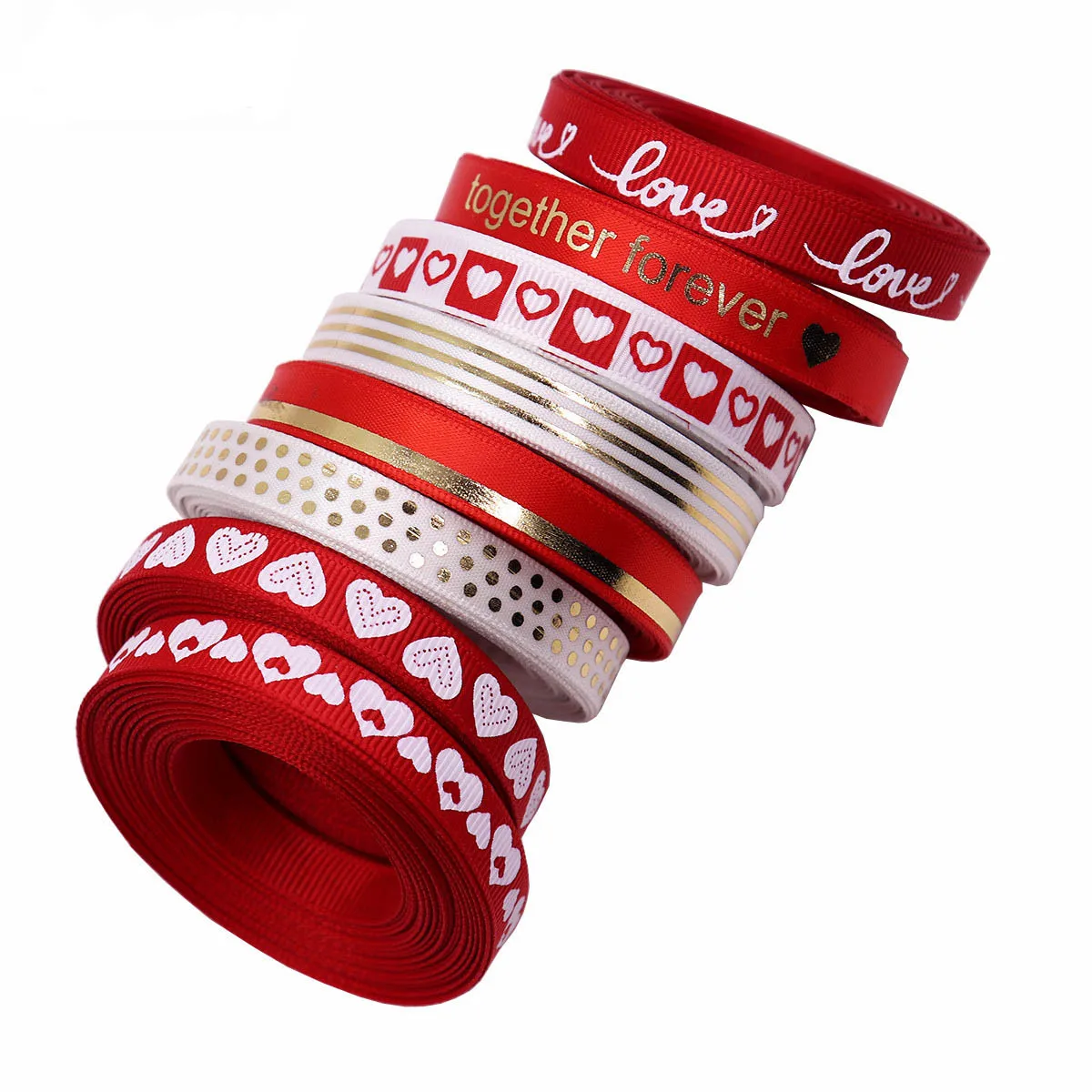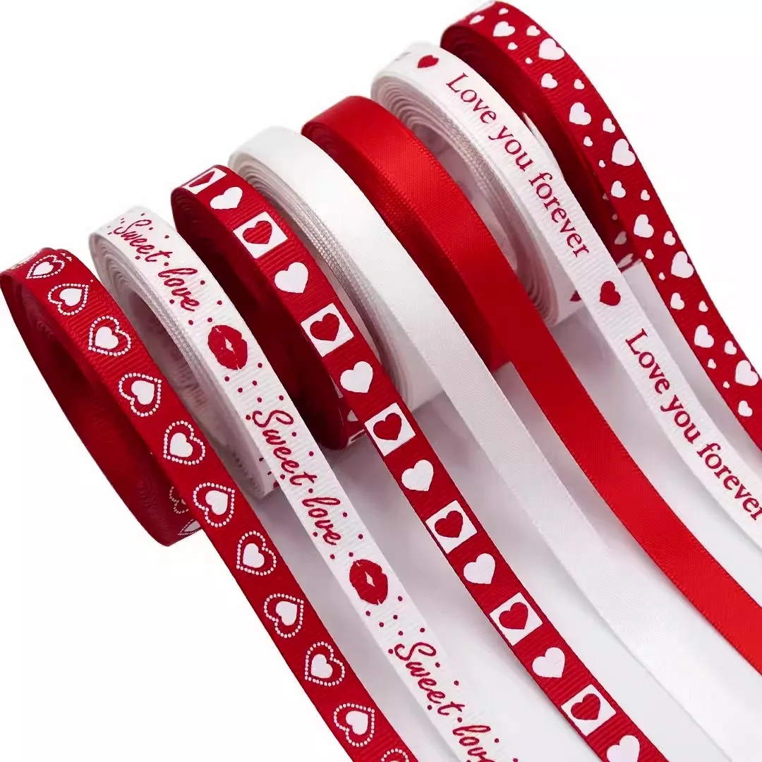 1cm Width Hot Stamping Love Ribbon Holiday Packaging Making Valentine’s Day Handmade DIY Crafts Home Decoration