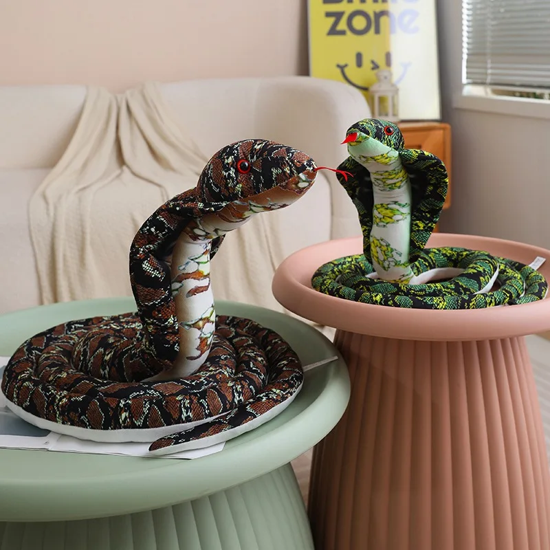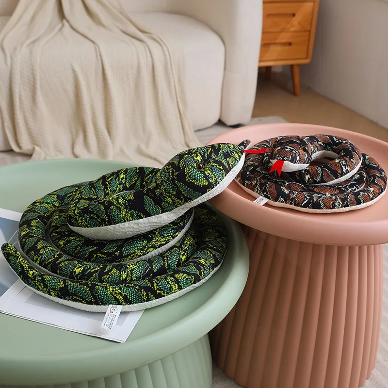 2.2/3/4M Giant Green& Brown Cobra Plush Toy Lifelike Coiled Snake Stuffed Long Pillow Funny Spoof Joke Soft Toys