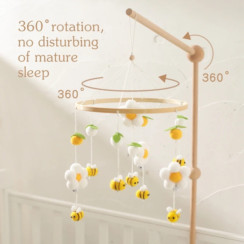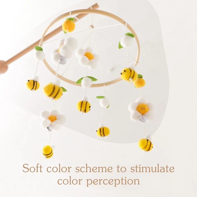 Baby Rattle Toys Wooden Mobile Musical Bed Bell Hanging Toy 0-12Month Newborn Cute Honeybee Hairball Infant Crib Holder Brackets