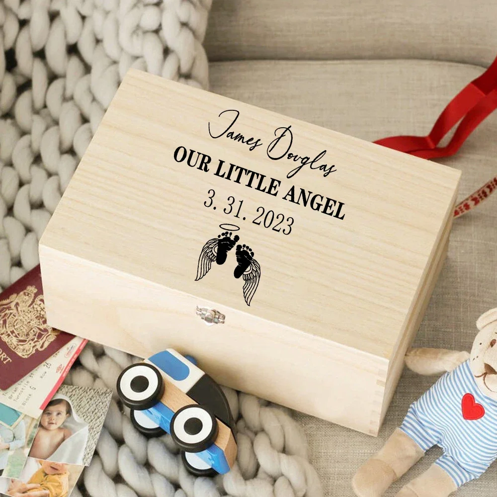 Hello there, lovely people! Imagine a keepsake that not only stores your precious memories but also tells a story. Our Custom Baby Wooden Memory Box is just that – a beautiful narrative of your baby’s first moments, lovingly crafted to last a lifetime. This isn’t just a box; it’s a treasure chest of firsts. From the first lock of hair to the first tooth, from the first pair of booties to the precious umbilical cord, this box is designed to hold all those little things that make your baby’s journey so special. Handcrafted from high-quality wood, this memory box is as sturdy as your love for your little one. It’s designed to withstand time, just like your precious memories. The natural wood grain adds a touch of rustic charm, making it a perfect addition to any nursery decor. But what makes this box truly unique is the personal touch we add to it. We engrave your baby’s birth stats on the lid, turning it into a beautiful memento of the day your world changed forever. The baby’s name, birth date, weight, and length – every detail is etched with love and care, making this box a one-of-a-kind keepsake. Our Custom Baby Wooden Memory Box makes a thoughtful and heartfelt gift for baby showers or newborn celebrations. It’s not just a gift; it’s a beautiful way to say, “Welcome to the world, little one. We’ve been waiting for you.” So, let’s celebrate your baby’s journey together. Let’s fill this box with love, laughter, and a whole lot of firsts. Because every baby deserves a special place in our hearts and our homes.
