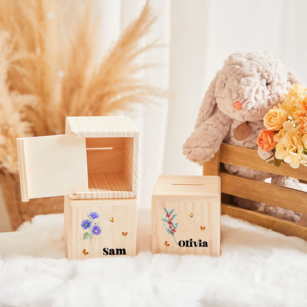 Customized Name Children Piggy Bank Personalized Birthday Flower with Butterfly Piggy Bank Easter Gifts Children Money Boxes