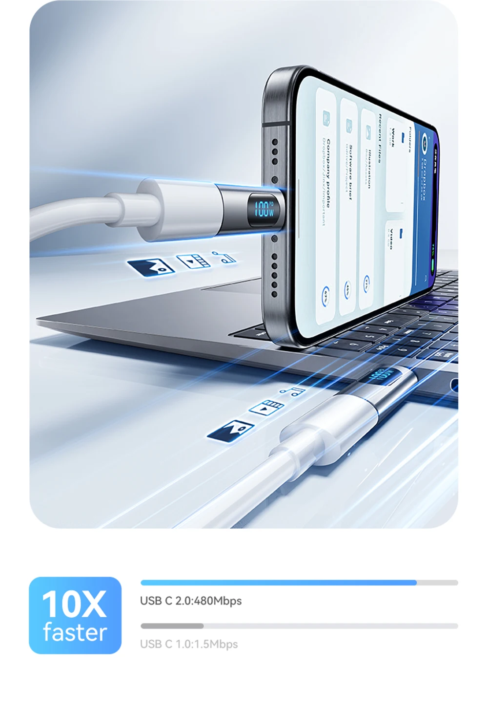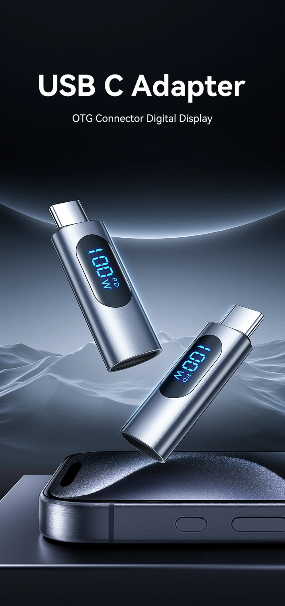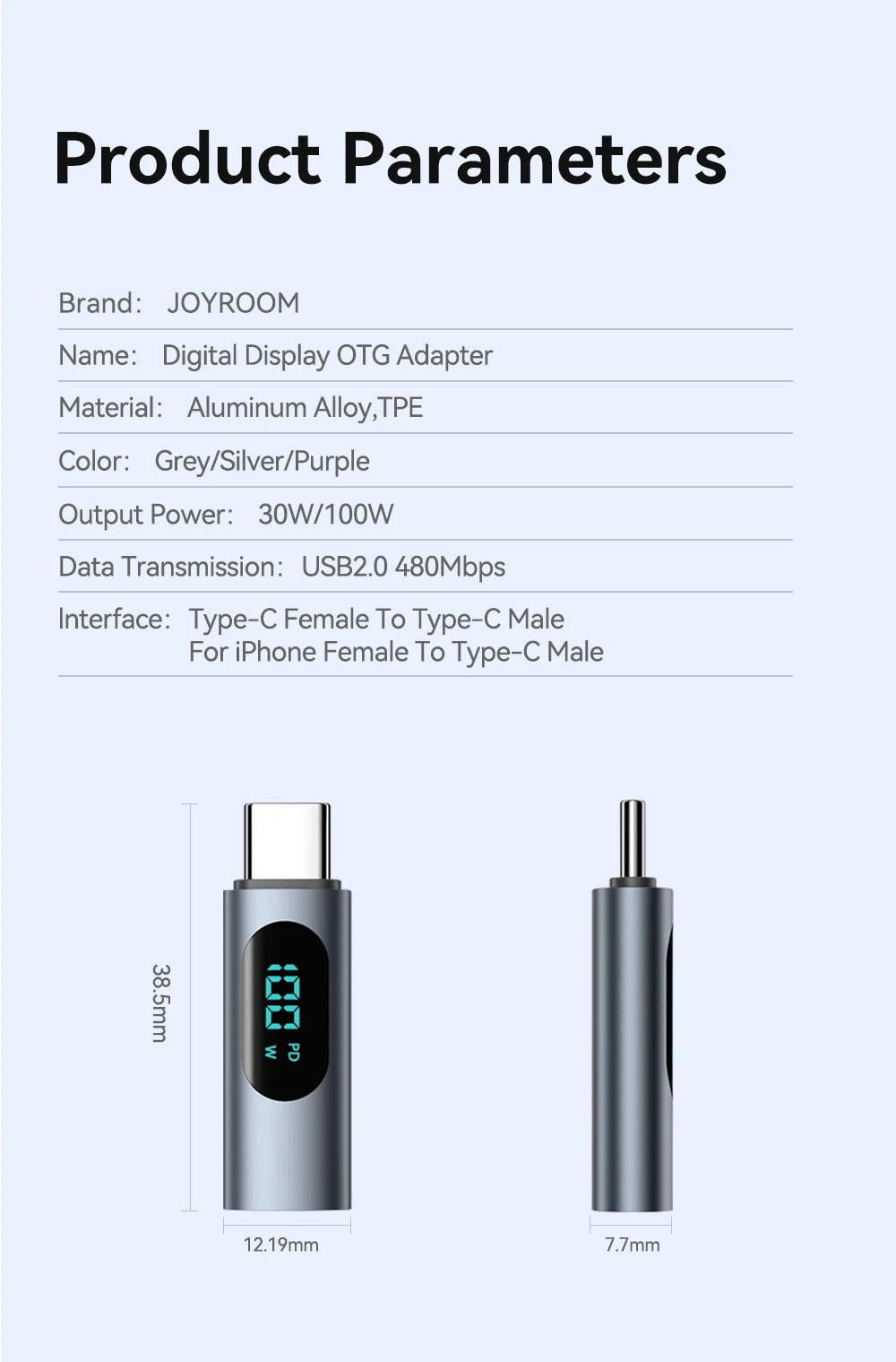 Joyroom 100W Type C to USB C OTG Adapter Digital Display Fast Charging Data Transfer for iPhone 15 pro max Macbook Pro Air SamsuJoyroom 100W Type C to USB C OTG Adapter Digital Display Fast Charging Data Transfer for iPhone 15 pro max Macbook Pro Air Samsu