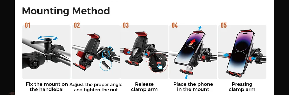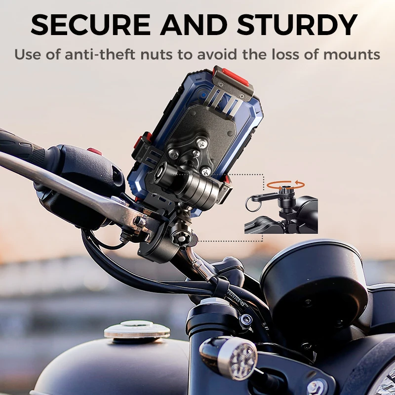 5.[ Anti-Theft Nuts ] The adjustment nuts on our bike phone holder can only be adjusted with the original factory-equipped wrench, preventing theft and ensuring your phone stays secure.