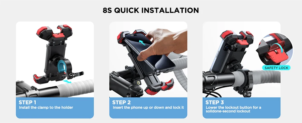 Fearless on bumpy roadCompatible with handlebar from 0.59"-1.57"8S quick installation