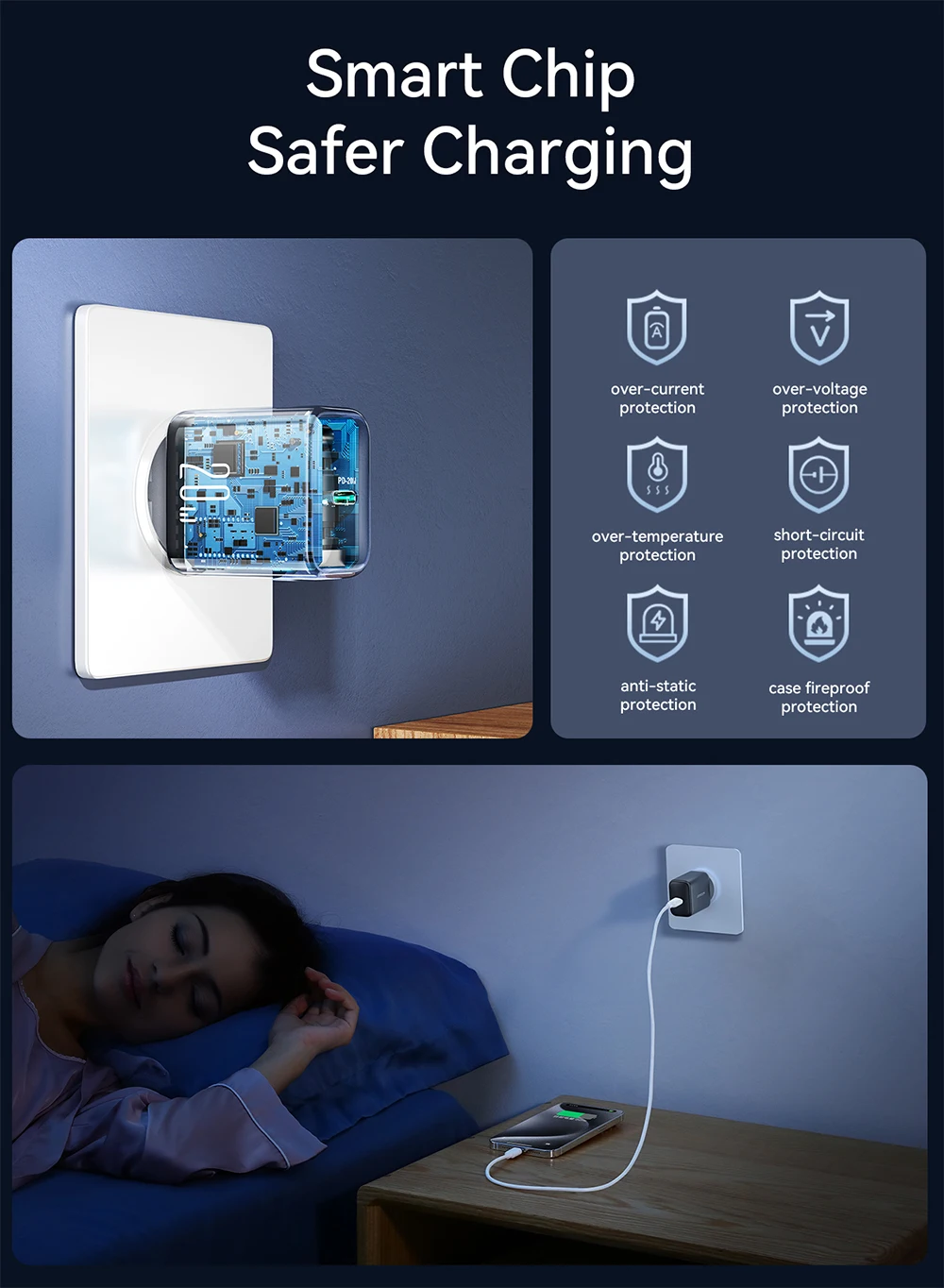 3.Safe & Reliable:Certified by RoHS, CE, & FCC, it offers protection against overheating, over-currents, overcharging, and short circuits. Charging automatically stops when the battery is full. Made from ABS + PC fireproof material, ensuring safe charging for all your digital devices.