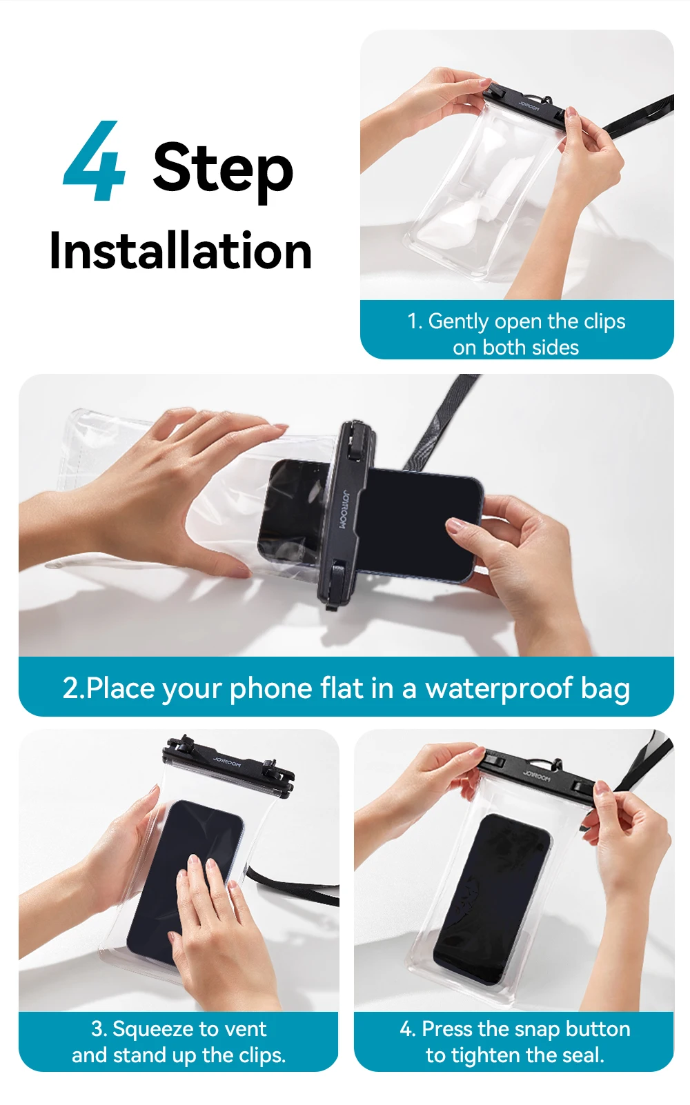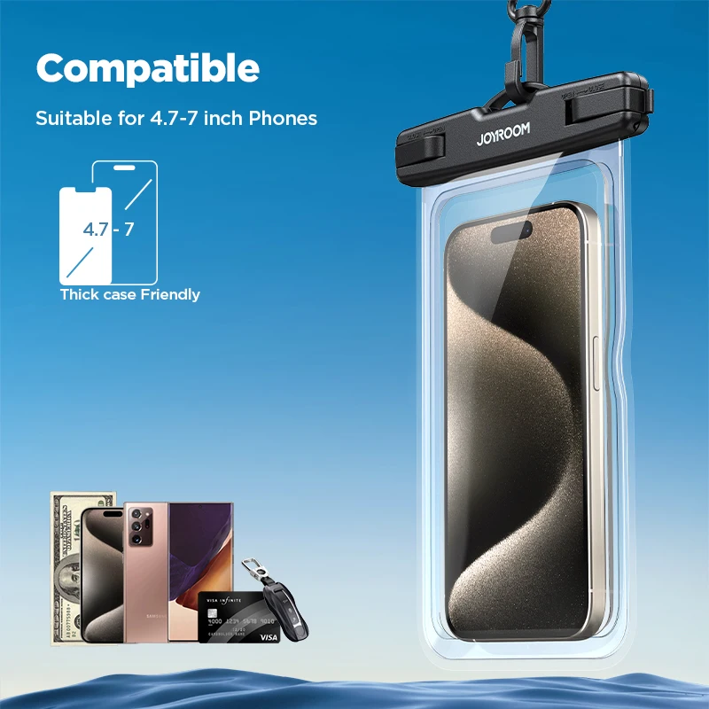 🌊Universal compatibility: JOYROOM cell phone waterproof case is suitable for cell phones up to 7 inches, such as for iPhone 15 14 13 12 Pro MAX XS, for Samsung Galaxy S24 S23 S22.