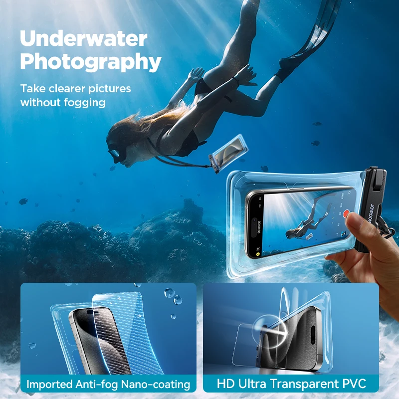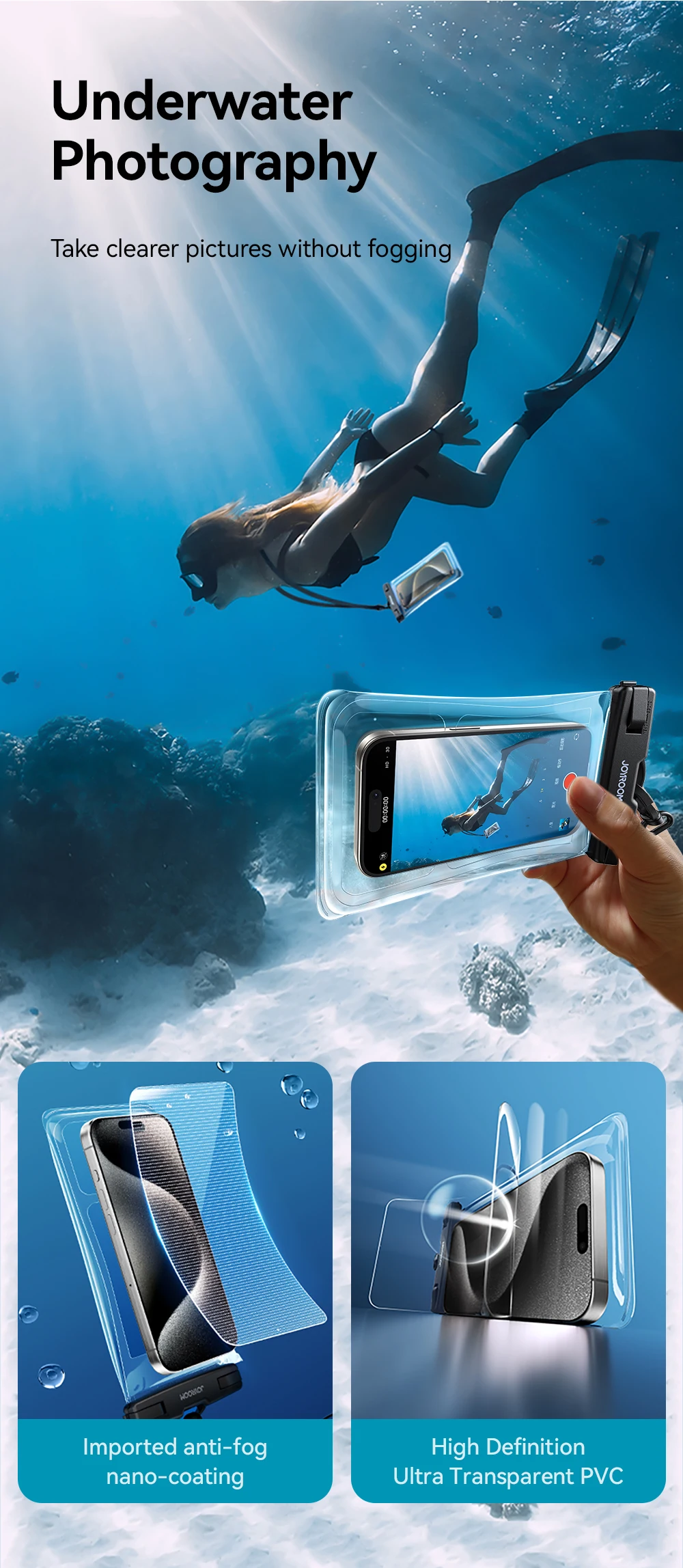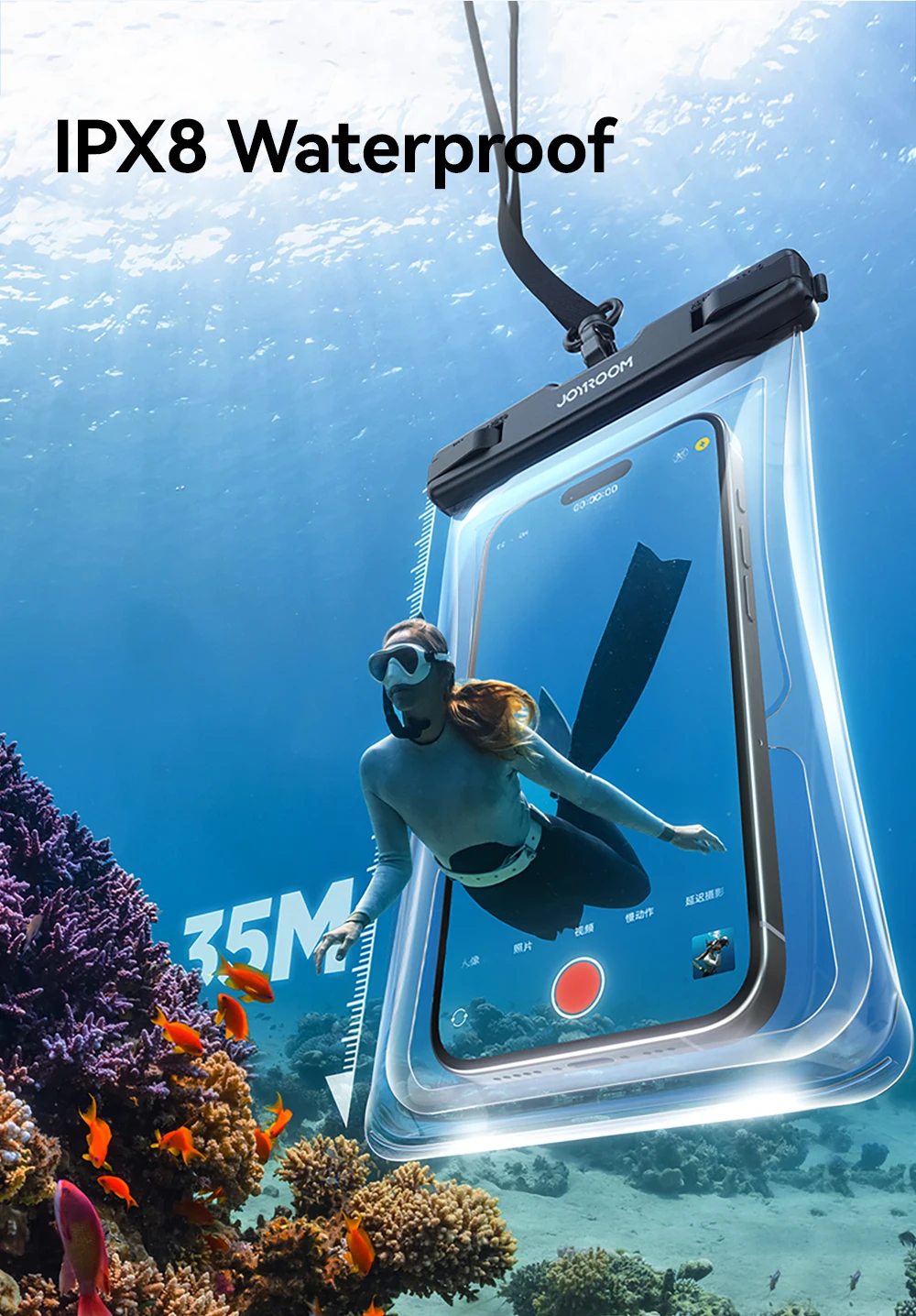🌊Excellent IPX8 waterproof: The JOYROOM waterproof phone case is equipped with the latest carabiners and sealed with seamless heat-pressing multiple locking technology for a perfect seal. It can protect your cell phone from water, snow, sand and dust. This underwater phone case has been tested many times and is waterproof to a maximum depth of 35 meters.