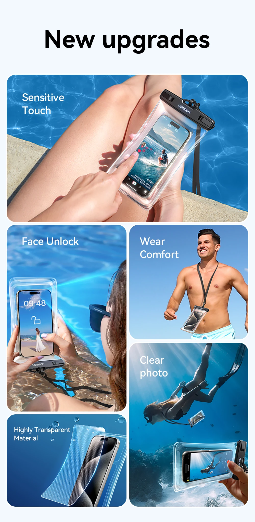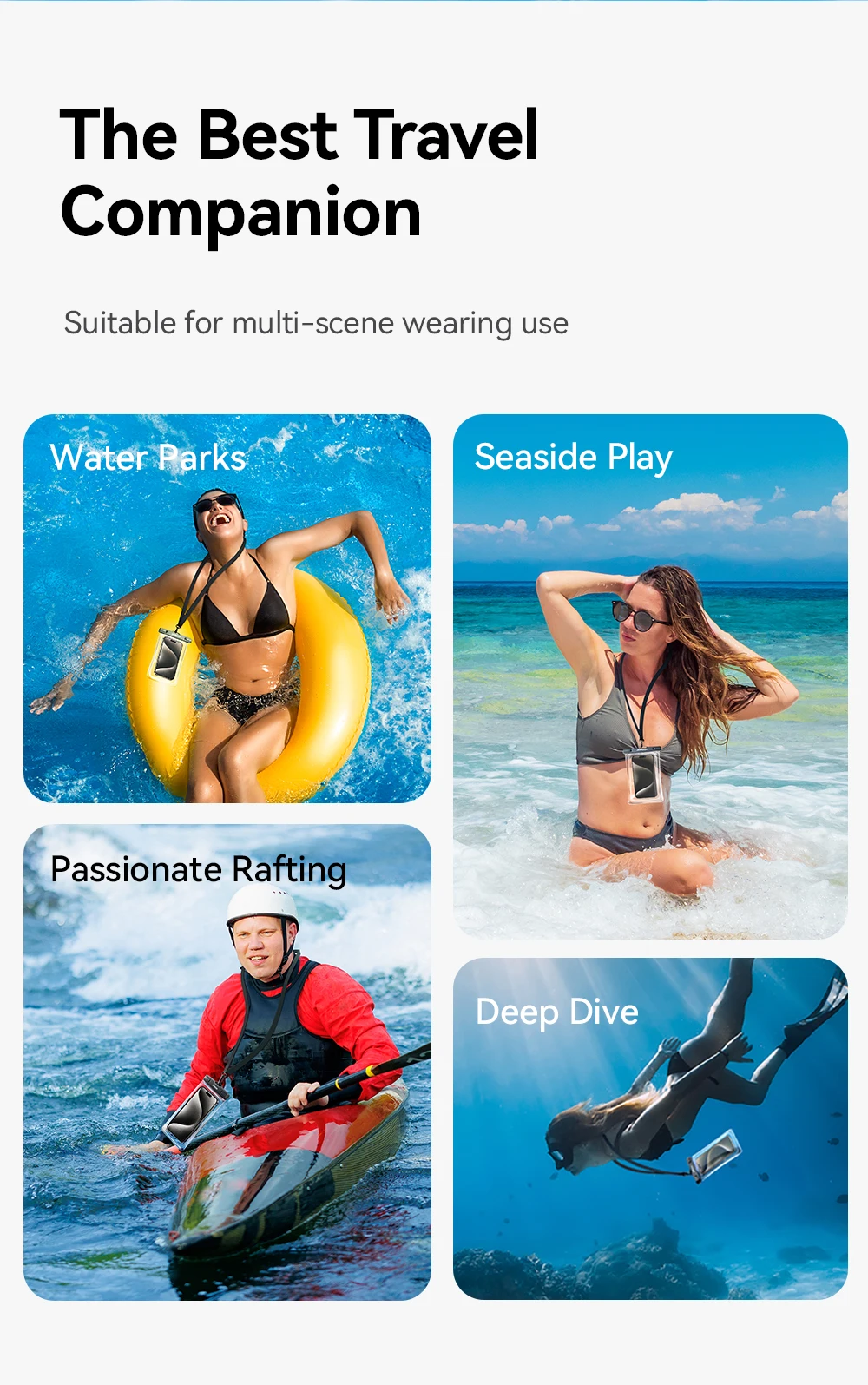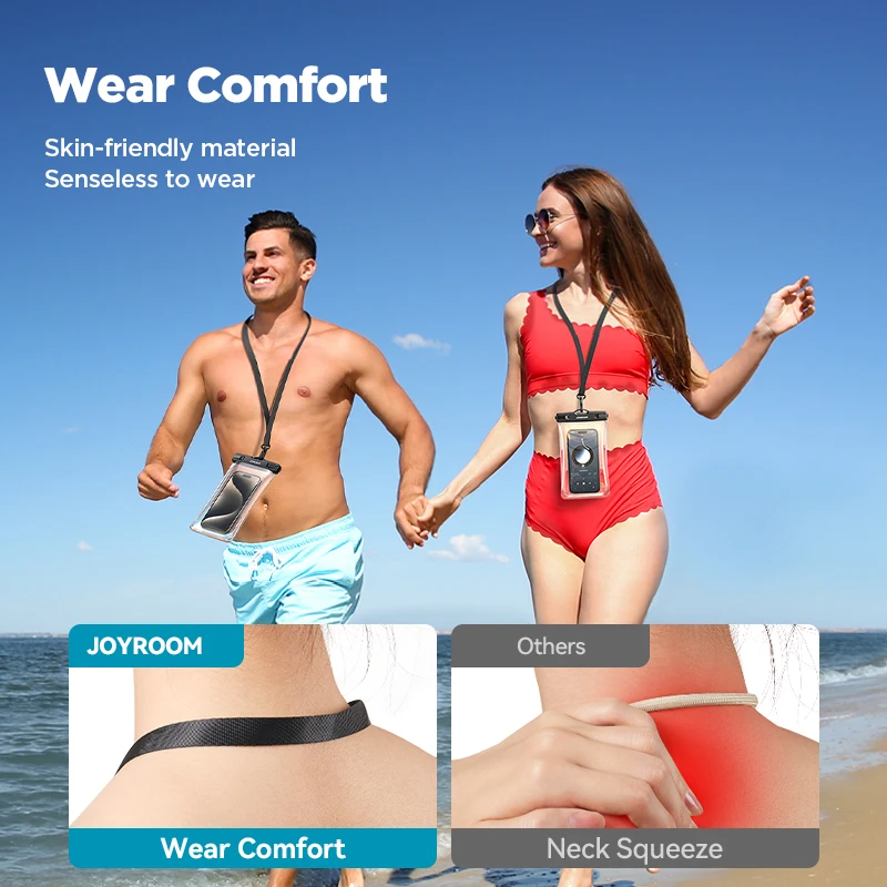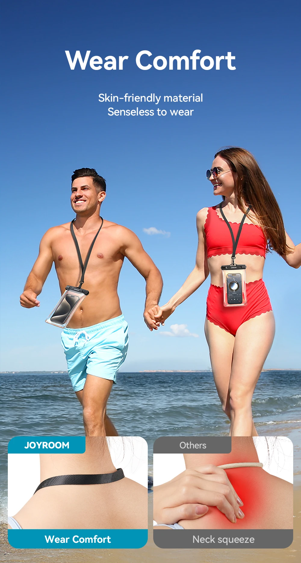 🌊Excellent IPX8 waterproof: The JOYROOM waterproof phone case is equipped with the latest carabiners and sealed with seamless heat-pressing multiple locking technology for a perfect seal. It can protect your cell phone from water, snow, sand and dust. This underwater phone case has been tested many times and is waterproof to a maximum depth of 35 meters.