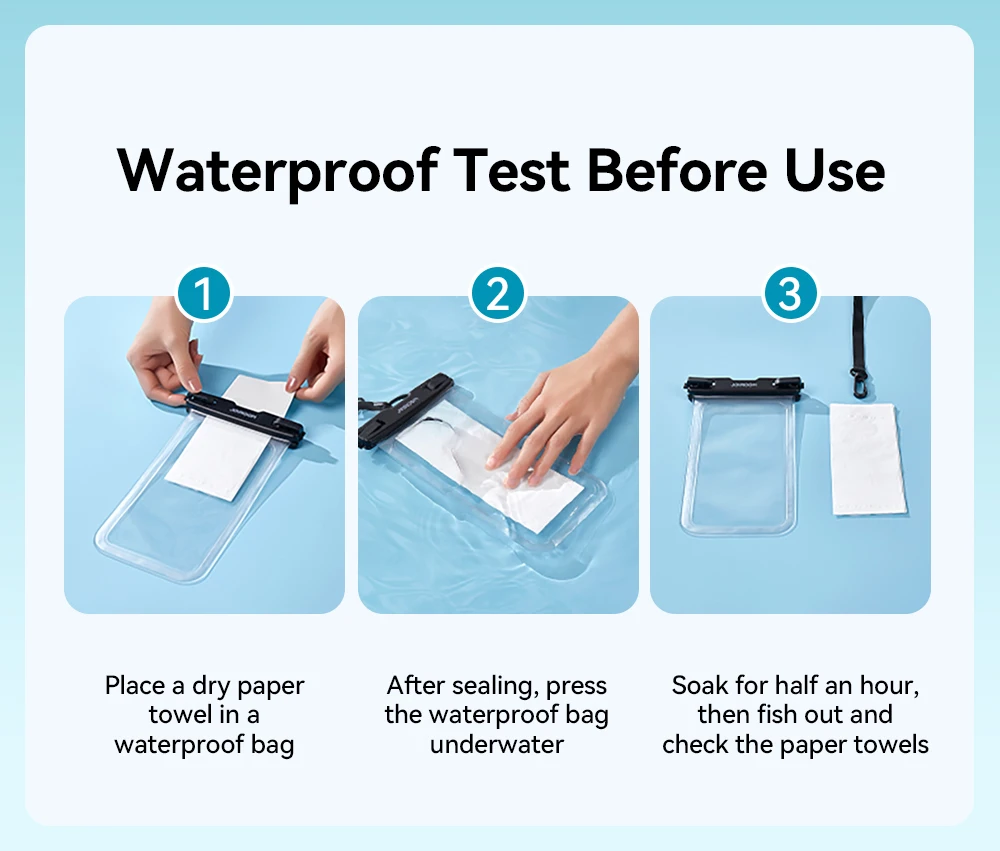 Please use a paper towel to test the waterproofness before use. Not suitable for fingerprint unlocking.