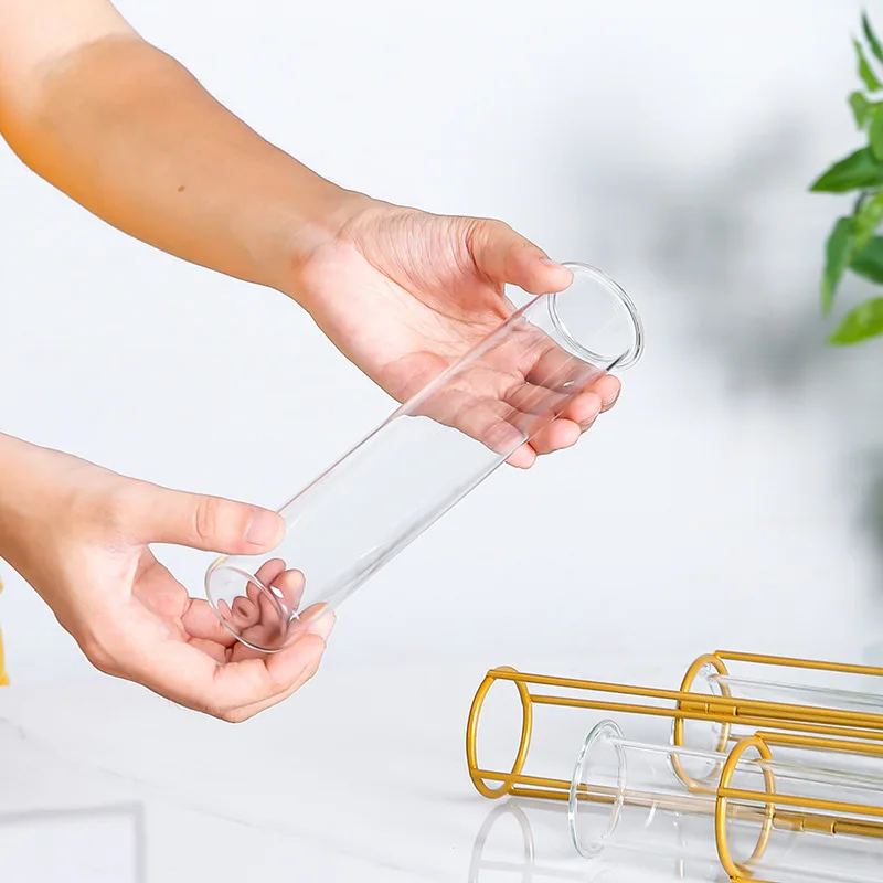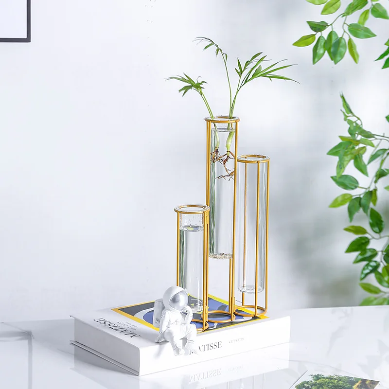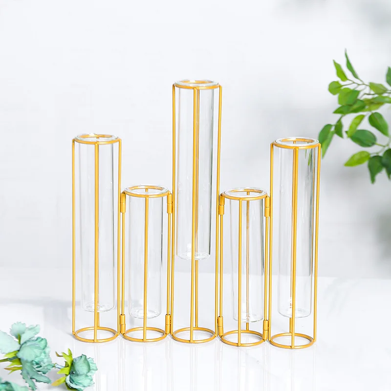Metal Flower Stand, Test Tube, Transparent Glass Vase, Household Ornament Nordic Style Home Decor Office Decoration