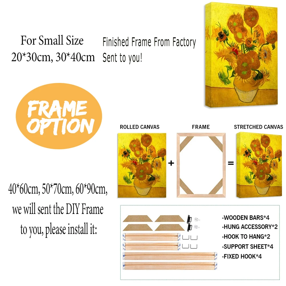 There have Option Including Frame, For Size 20*30cm, 30*40cm, we will sent the finished Frame to you: