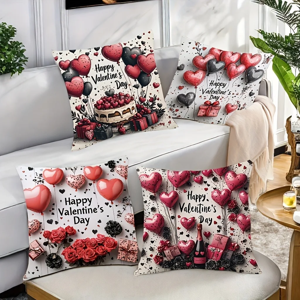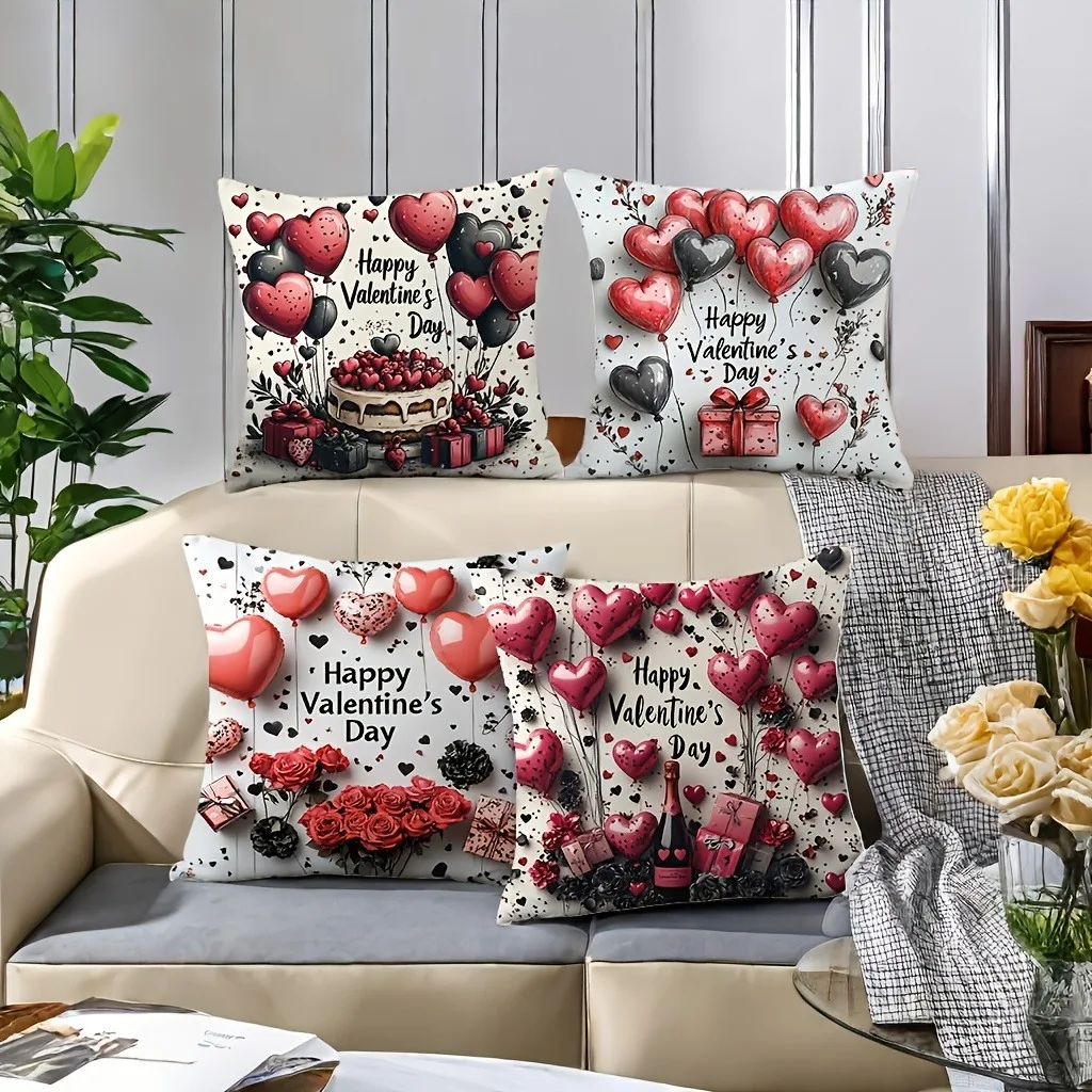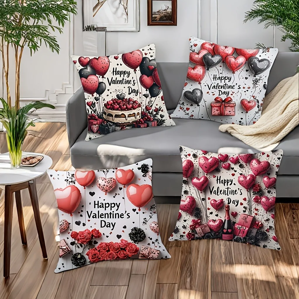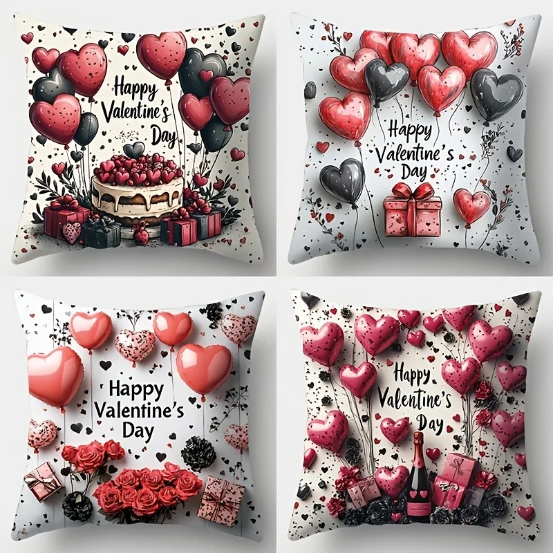 Valentine's Day Red Balloon Print Couple Home Decor Pillowcase Holiday Bedroom Living Room Decoration Polyester Cushion CoverValentine’s Day Red Balloon Print Couple Home Decor Pillowcase Holiday Bedroom Living Room Decoration Polyester Cushion Cover